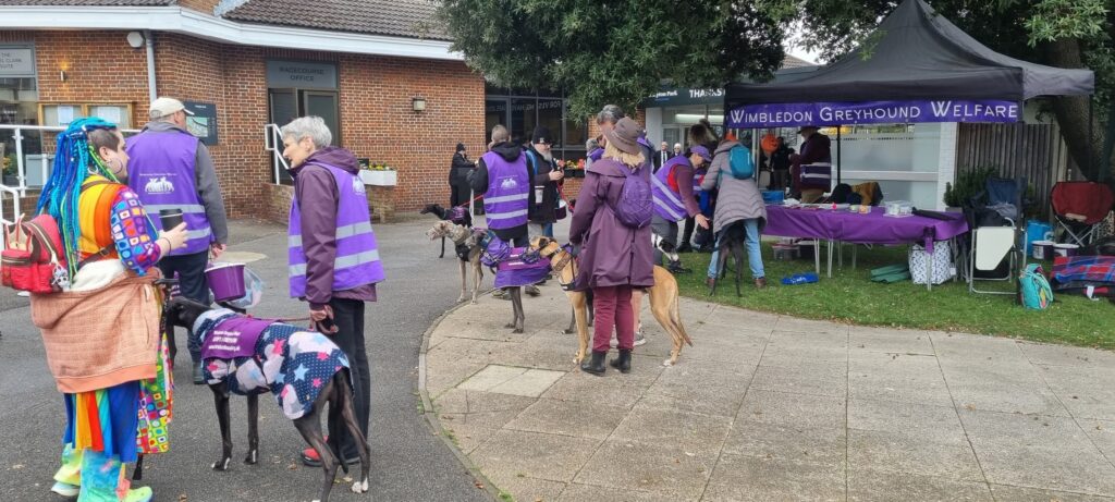Also, a big thank you to Kempton Park for inviting us again, to Gaynor Renwick for liaising with Kempton on our behalf and to the kind folk who stopped to talk to us on the day to meet the hounds or to make a donation to help us to help the homeless hounds.